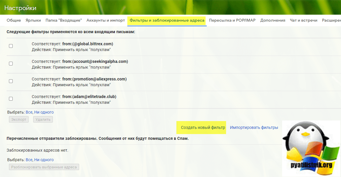Кстати в общей массе, они так же будут помечены соответствующим ярлыком. Как видите фильтрация в Gmail настраивается очень просто.