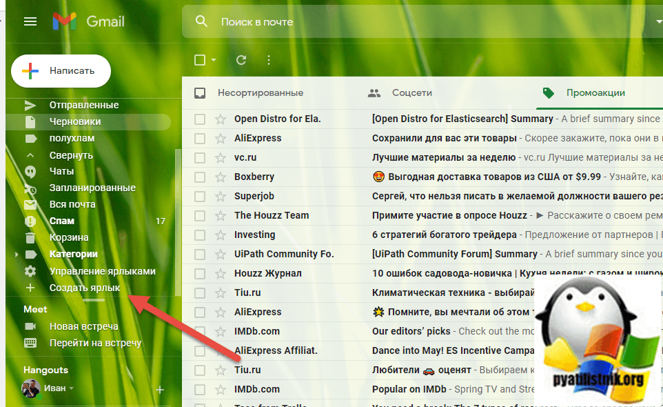 Особенность Google почты — разделение писем по категориям. Gmail по умолчанию разделяет письма на группы «Соцсети», «Промоакции», «Оповещения», «Форумы», «Несортированные». Пользователь может настраивать разделение: