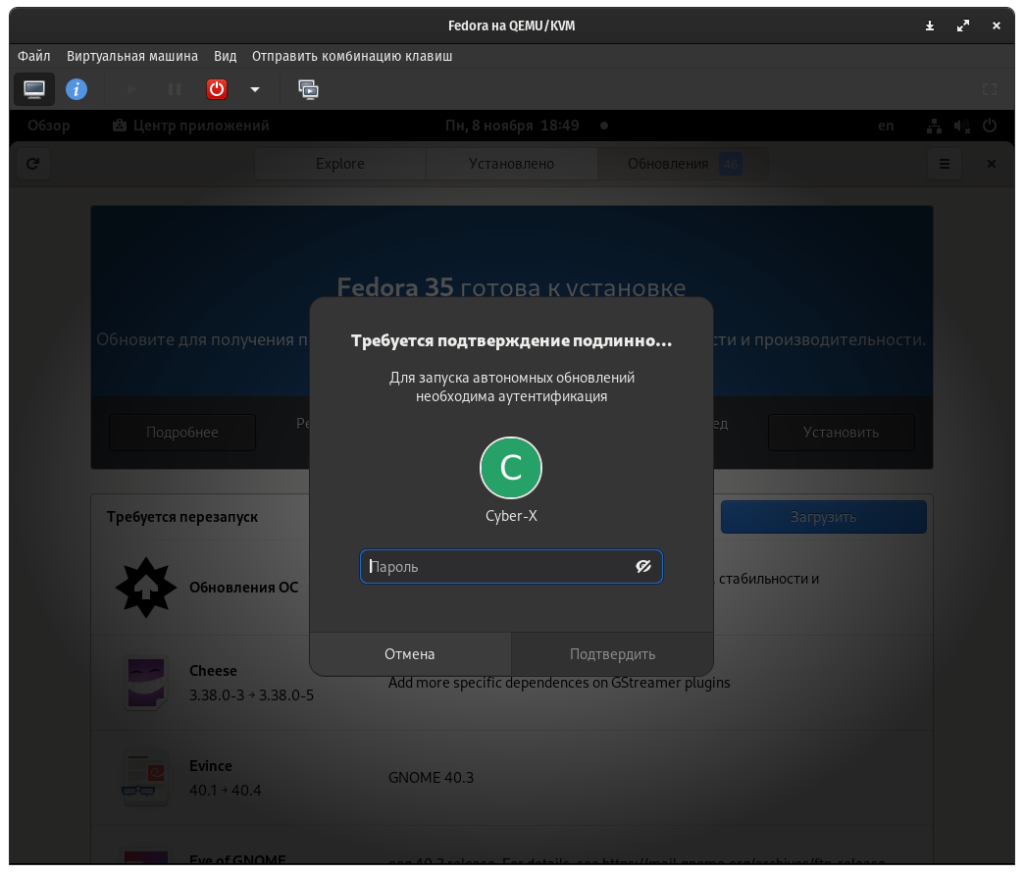 Обновления Fedora до актуальной версии с помощью графического интерфейса