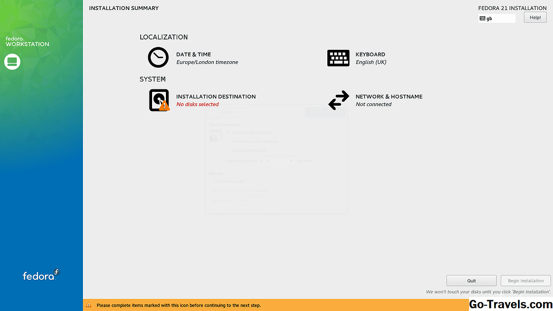 Экран установки установки Fedora теперь будет отображаться, и этот экран используется для управления всем процессом установки.