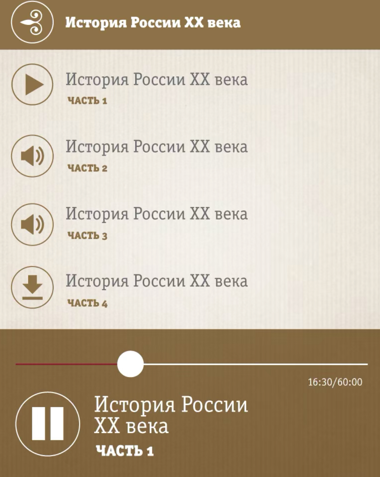 Аудио-истории в исполнении известных учёных и профессоров московских вузов. Лекции удобно слушать, когда едешь в автобусе или идёшь в школу, тем самым подтягивая знания по истории и проводя время с пользой.