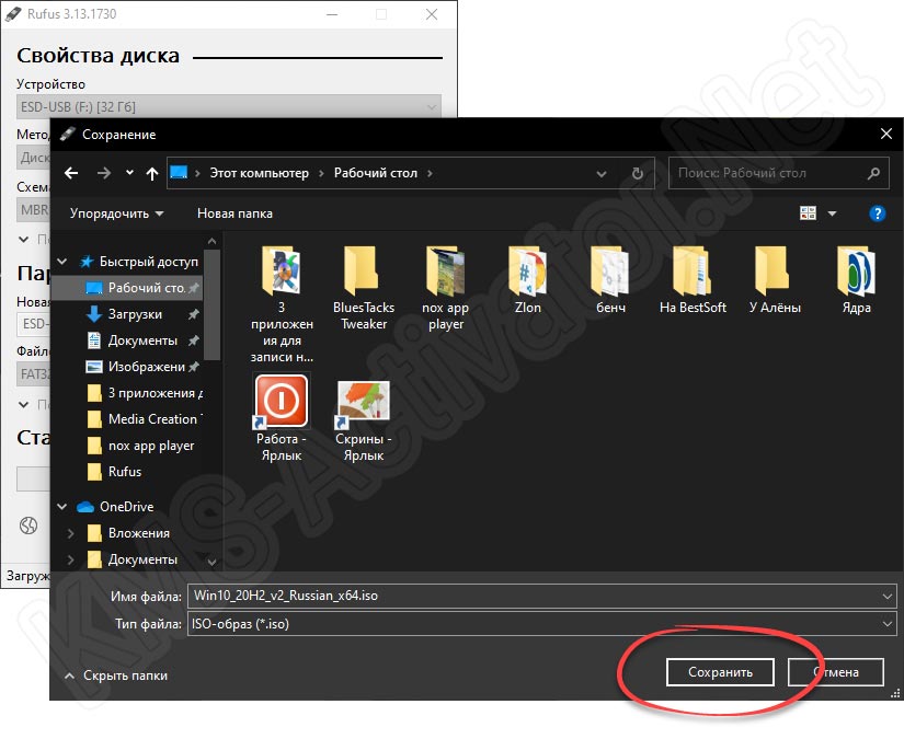 Далее сохраняем файл на ПК. Если вы выбрали USB вариант, то нужно будет указать системе на флешку, которая отформатирована специально под образ.