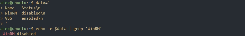 В примере ниже слева указана строка, которая выводится через команду справа: