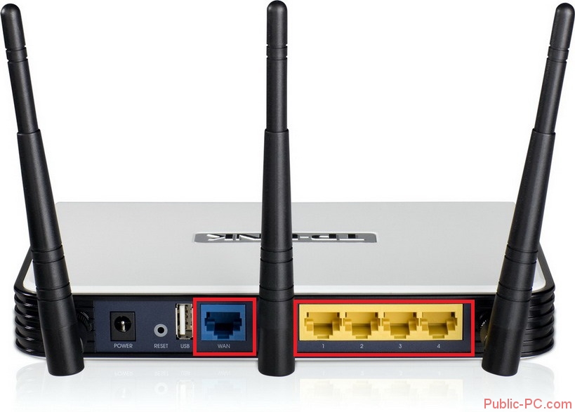 Ниже пример, куда подключается патч корд в обычном роутере.