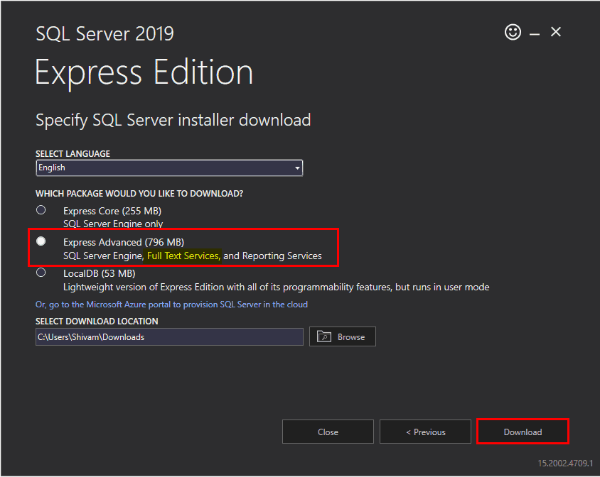 In the case of SQL Server Express Edition, we have to download the Express Edition with advanced services. Here are some of the additional steps that we need to follow in the case of SQL Server Express Edition.