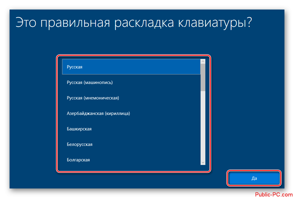 Прежде всего выберите дополнительную раскладку клавиатуры. Английскую добавлять не нужно, она предусмотрена по умолчанию. Нажмите «Да».