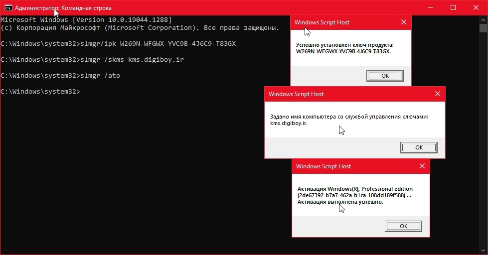 - Ввести команду «slmgr/ipk W269N-WFGWX-YVC9B-4J6C9-T83GX».