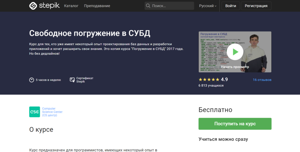 Это курс для самостоятельного изучения от EdX, который охватывает все темы, связанные с базами данных и SQL, от начального до продвинутого уровня. Его преподают и проводят отраслевые эксперты, и он поможет вам развить навыки программирования баз данных, чтобы расширить свои знания. Благодаря их лекциям вы узнаете, как создать базу данных SQL, вы изучите фундаментальные основы баз данных и т. Д.