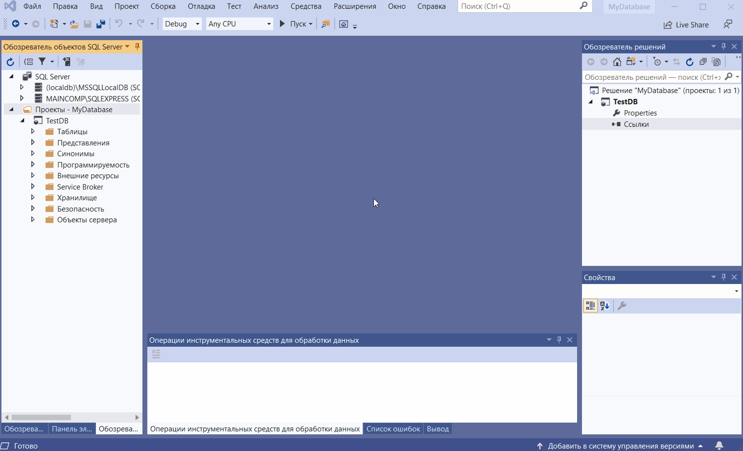 SSDT создан для проектной разработки баз данных с применением всех возможностей и преимуществ Visual Studio, а также с использованием привычного для разработчиков приложений интерфейса и функционала.