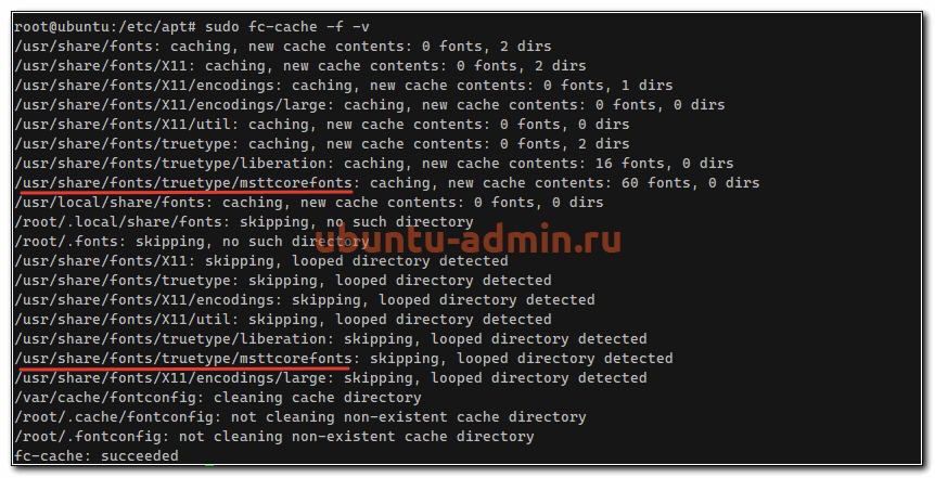 Во время установки шрифтов, идёт обращение к различным внешним серверам для загрузки файлов. Бывает так, что какое-то соединение отваливается по таймауту и не понятно, выполнилась ли установка шрифтов корректно. В этом случае установку mscorefonts можно перезапустить, чтобы получить гарантированно положительный результат: