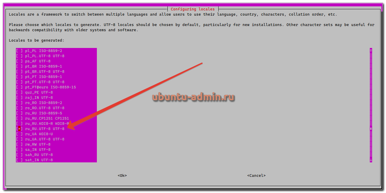 Её же указываем в качестве Default. Перезайдите в систему, чтобы применилась новая локаль. Проверить, применилась ли русская локаль, можно просто запустив Midnight Commander. Всё управление будет на русском языке.