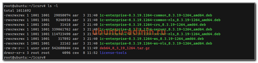 sudo dpkg -i 1c-enterprise-8.3.19.1264-common_8.3.19-1264_amd64.deb 1c-enterprise-8.3.19.1264-server_8.3.19-1264_amd64.deb 1c-enterprise-8.3.19.1264-ws_8.3.19-1264_amd64.deb
