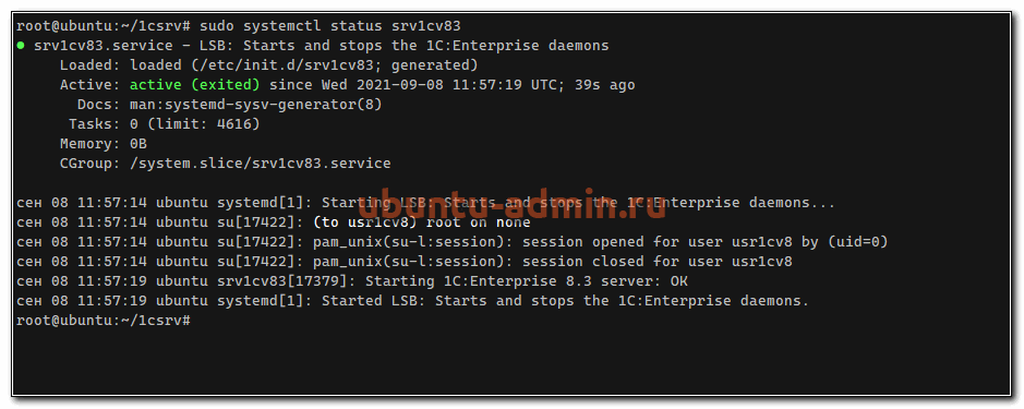 sudo systemctl start srv1cv83 sudo systemctl enable srv1cv83