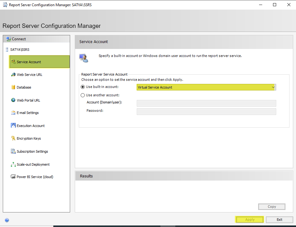 If the Apply button was already grayed out, this means the SSRS was already configured. This step sets up the Report Manager web site where you will publish reports