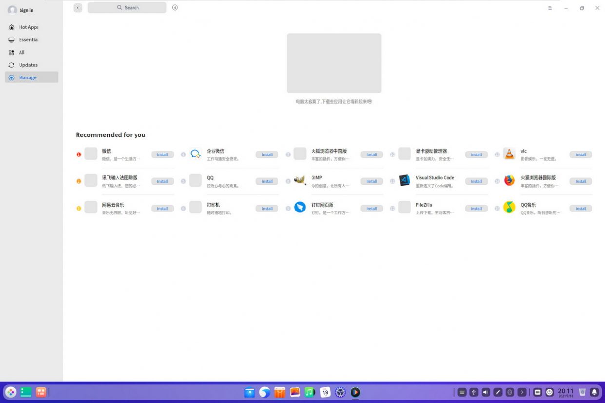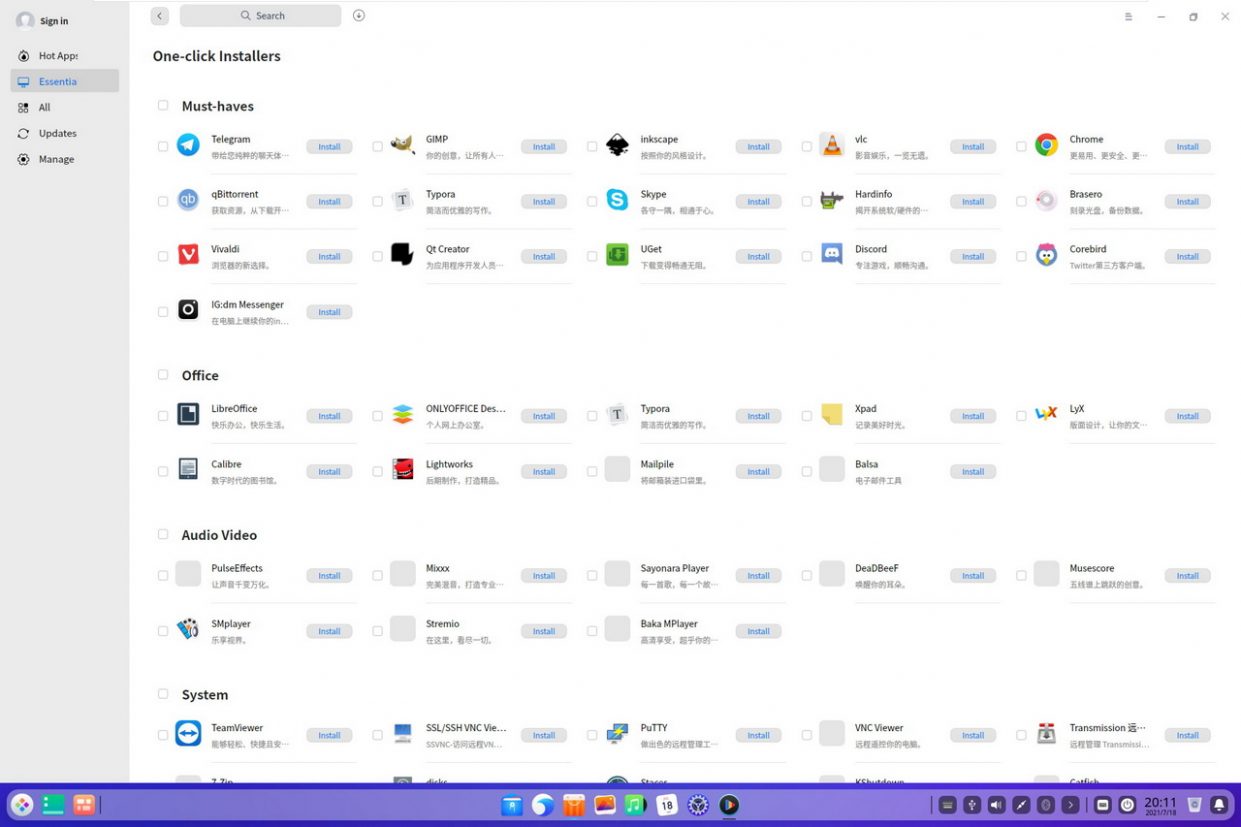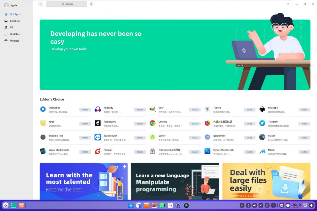 2. Deepin на основе Debian, который практически полностью копирует оформление операционной системы Apple и предлагает собственную экосистему приложений, созданную для работы в закрытых китайских условиях.