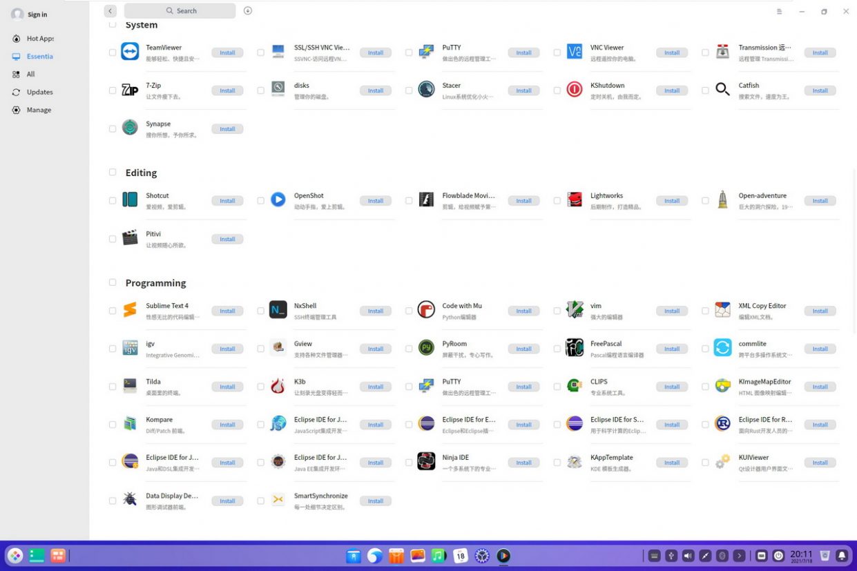 Deepin наследует все пакеты с базы Debian и предоставляет собственный магазин для установки приложений Deepin Store. Я думаю вы уже догадались о прямой аналогии с App Store от Apple. Здесь снова повторяется интерфейс macOS, а сами программы удобно разбиты по категориям. Если кого вдруг не устроит Deepin Store, может использовать Synaptic.
