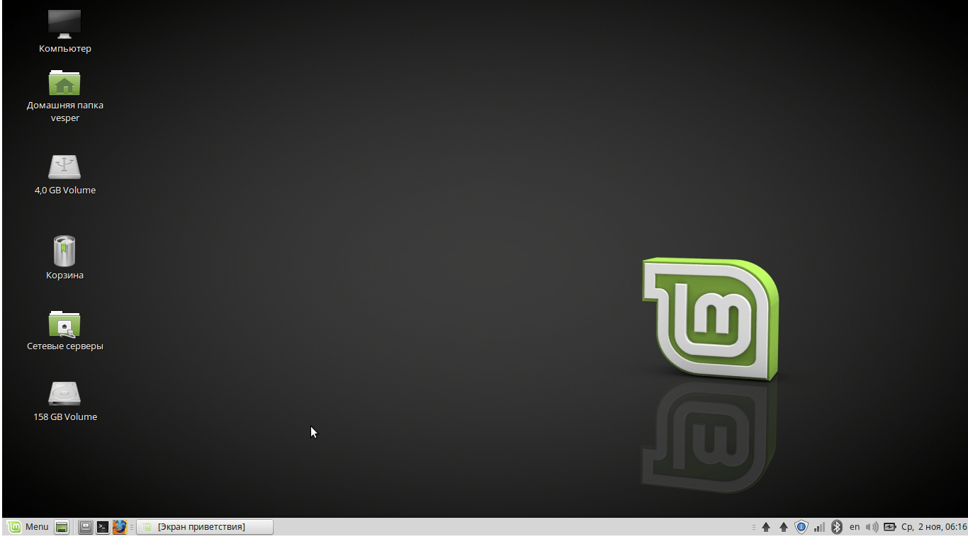 Вид рабочего стола Linux Mint 18 (Sarah) MATE: