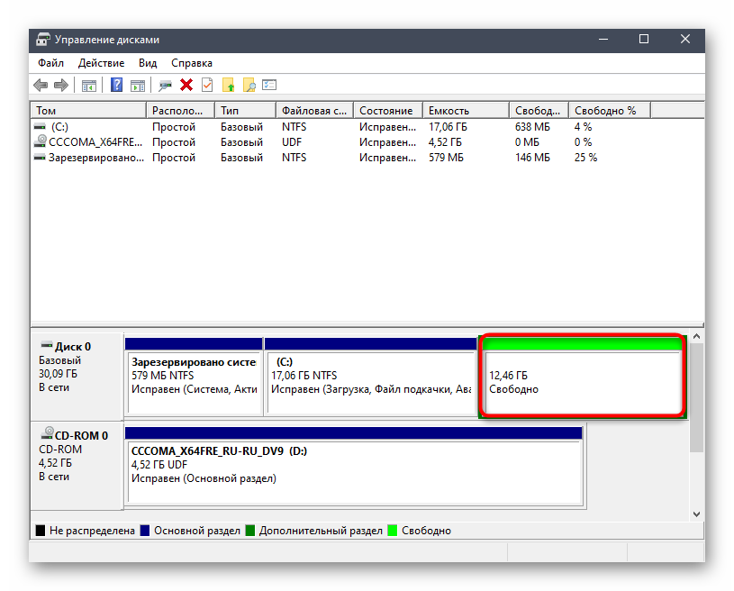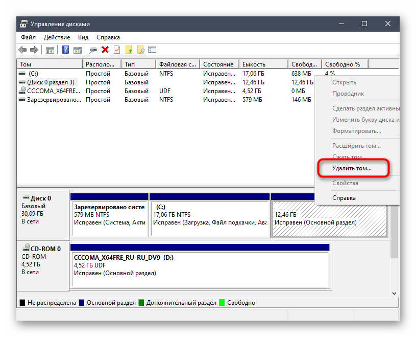 - После этого том освободится, что в дальнейшем позволит использовать пространство для создания записи новой системы.