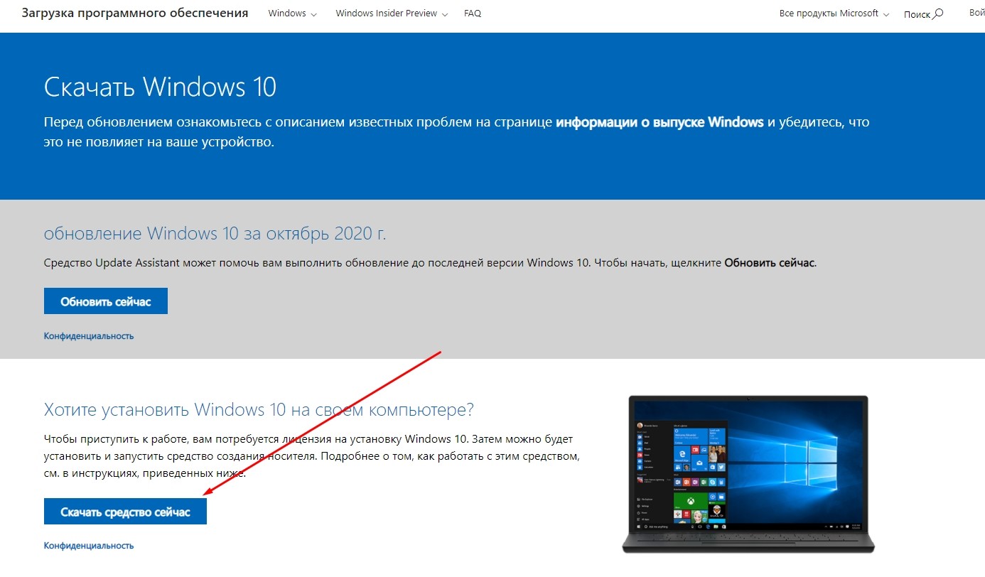 Скачать образ Windows на ПК.
