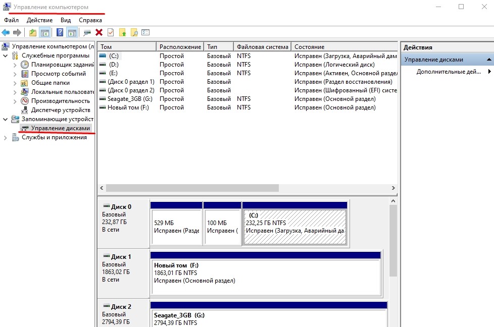 - Перейти в меню пуска и выбрать раздел управления дисками.