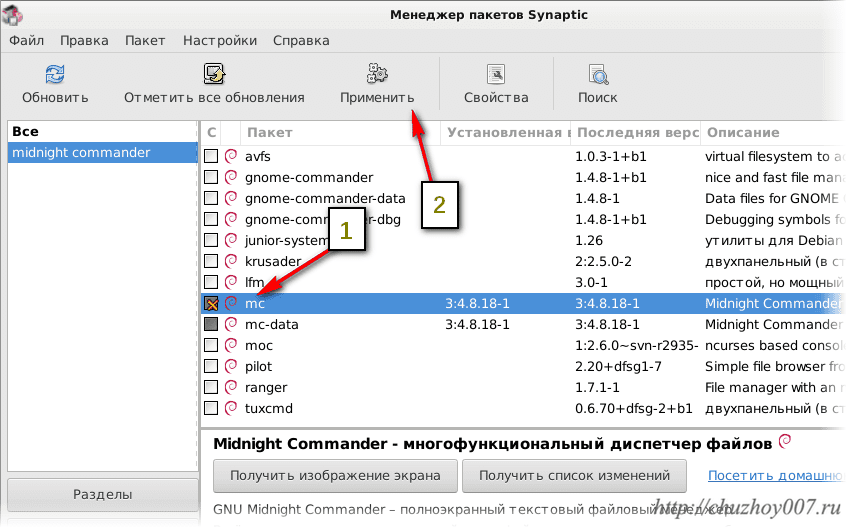 Как удалять программы с помощью графического менеджера пакетов Synaptic