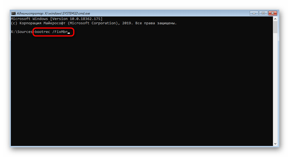 В новом окне вписать «bootrec /FixMbr».