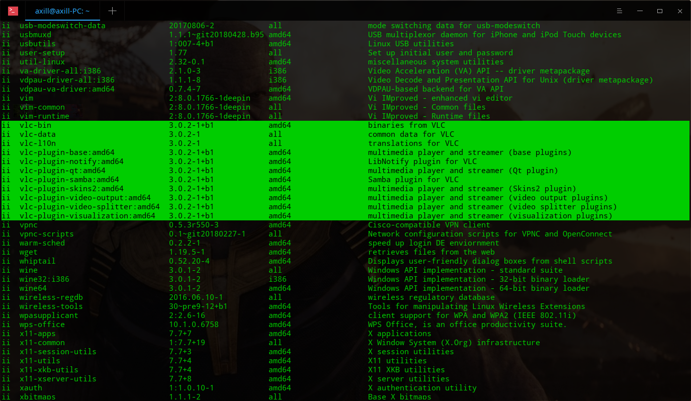 Теперь выполните следующую команду для вывода списка установленных пакетов в системе: