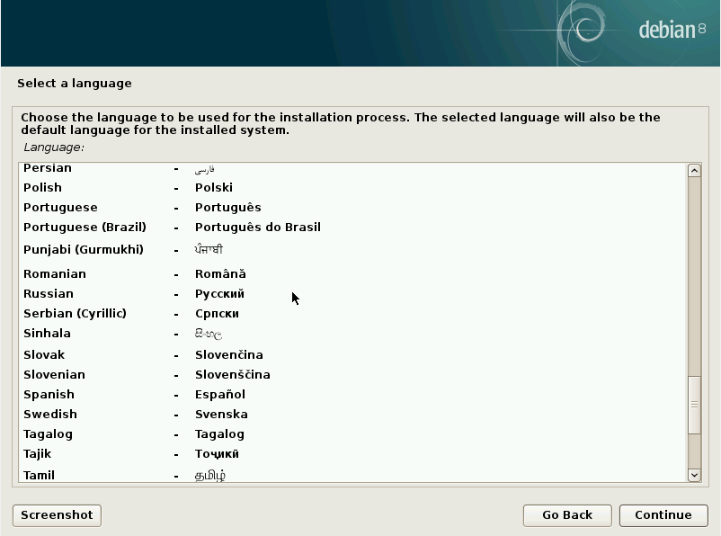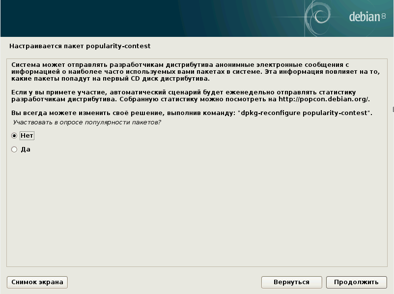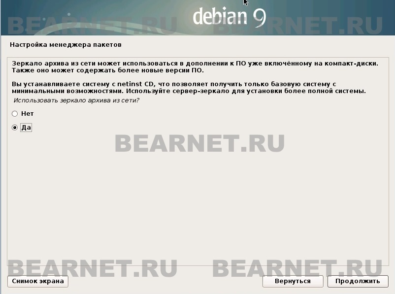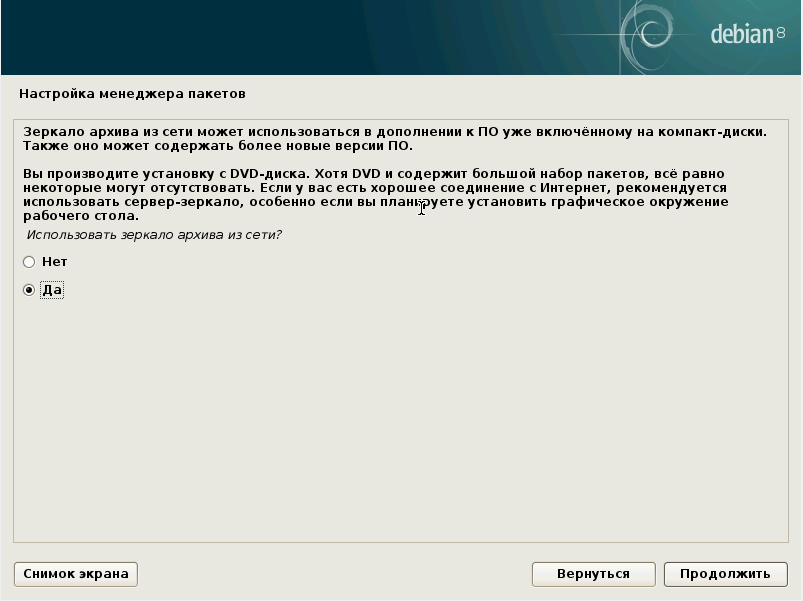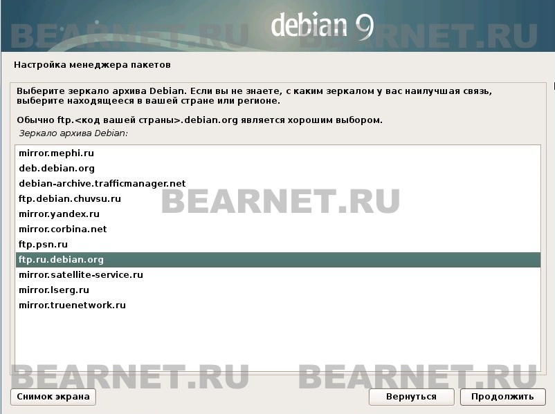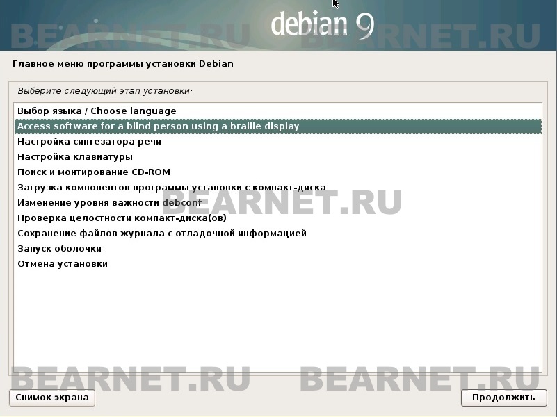 Начнём установку Debian.