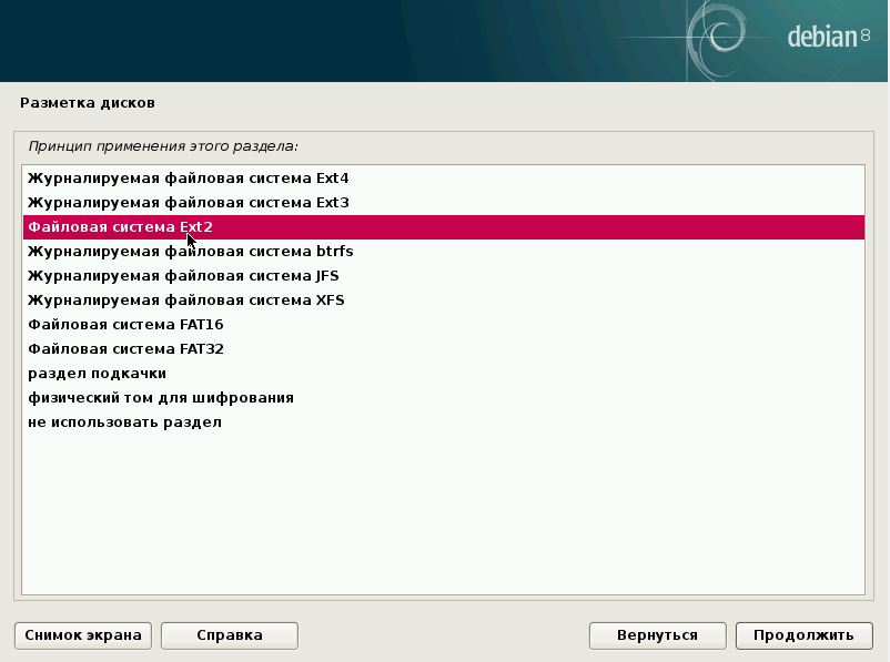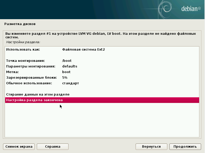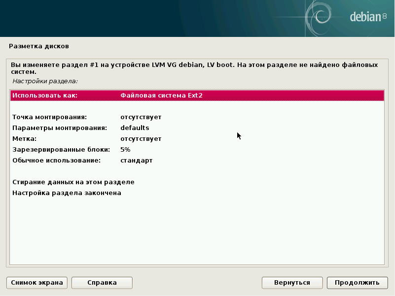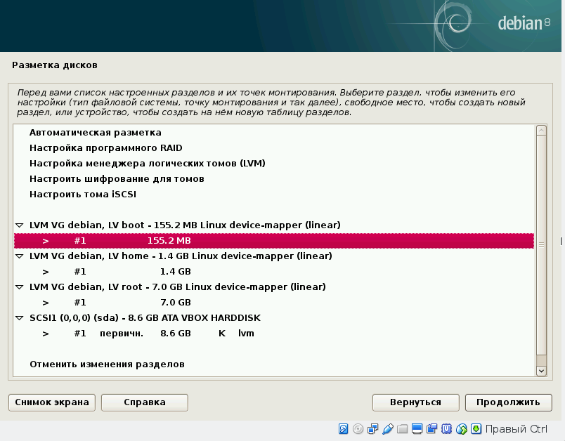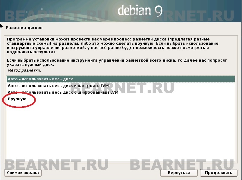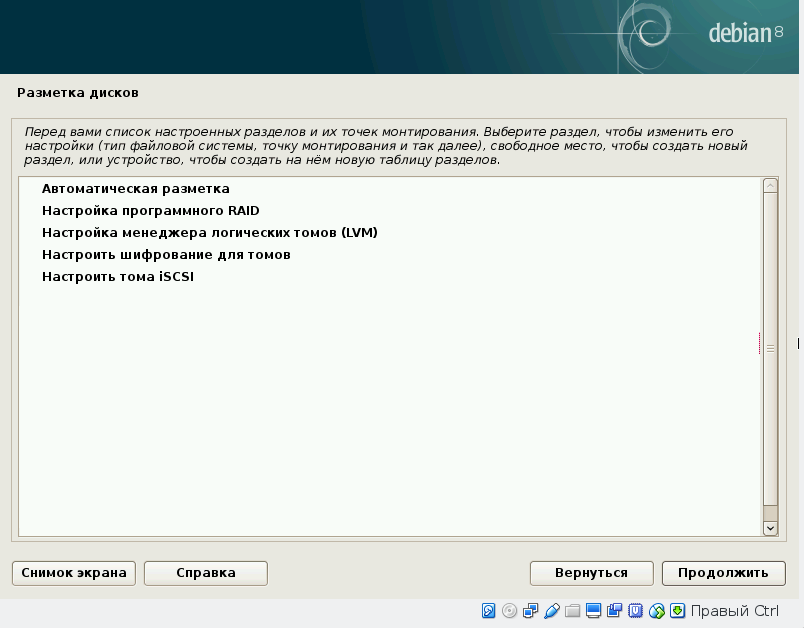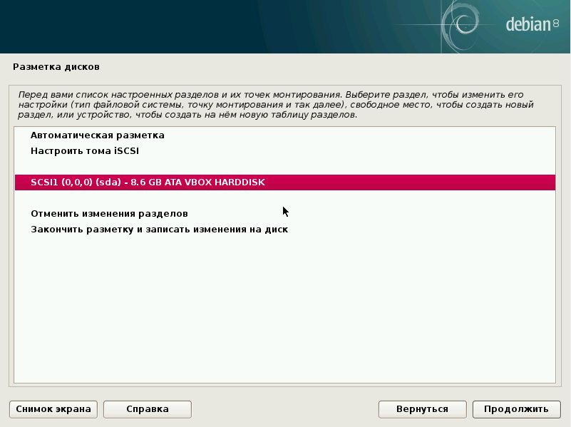 Установка Debian: разметка диска