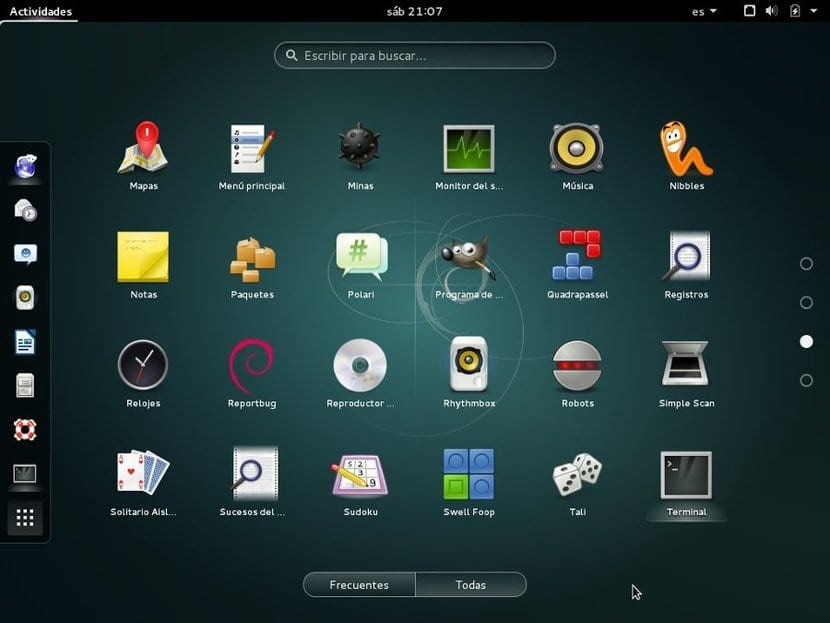 - Debian по умолчанию приносит GNOMEХотя он может работать с множеством различных окружений рабочего стола, в этом смысле он вполне уравновешен с Ubuntu.