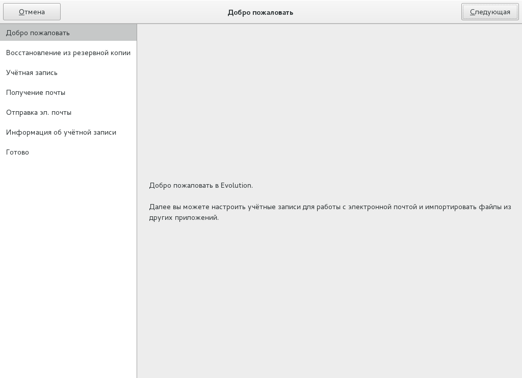 Создание новой учетной записи в Evolution
