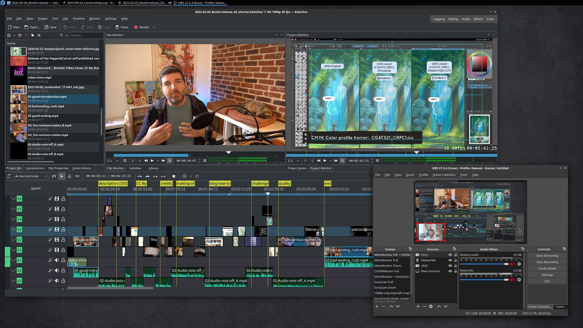I use Kdenlive mainly for my videos since the DVD Chaos&Evolution in 2009. I love this video-editing application. I’m using mainly here a Kdenlive Appimage. You’ll find it on Kdenlive official website. You’ll need to install using the same method I wrote on the paragraph about Krita. It’s very easy once you already have AppimageLauncher.