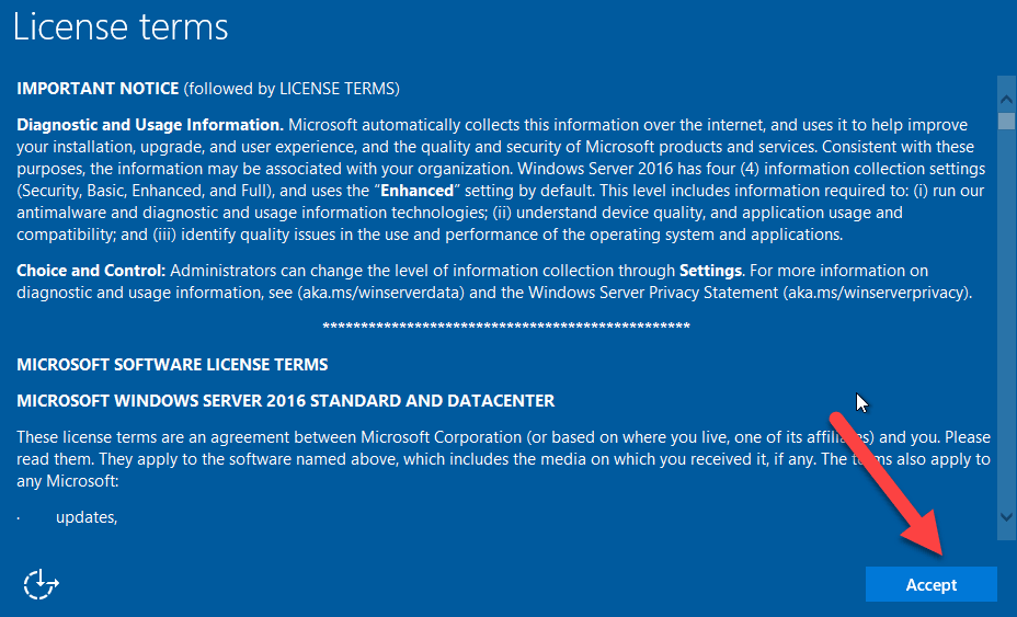 - В зависимости от канала распространения, из которого был получен носитель Windows Server (розничная, корпоративная, OEM, ODM и т. д.) и лицензия на сервер, может появиться запрос на ввод лицензионного ключа для продолжения.