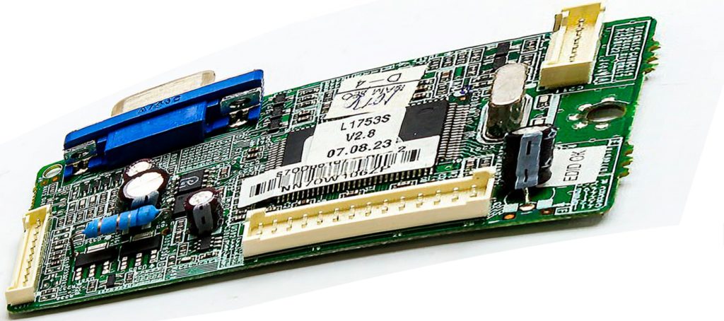 Функция блока питания заключается в том, чтобы принимать переменный ток из сети и преобразовывать его в постоянный. Эта деталь может чаще всего устанавливаться в корпусе монитора. Но существуют и такие модели экранов, где блок питания внешний. В последнем случае ремонт потребует меньше усилий.
