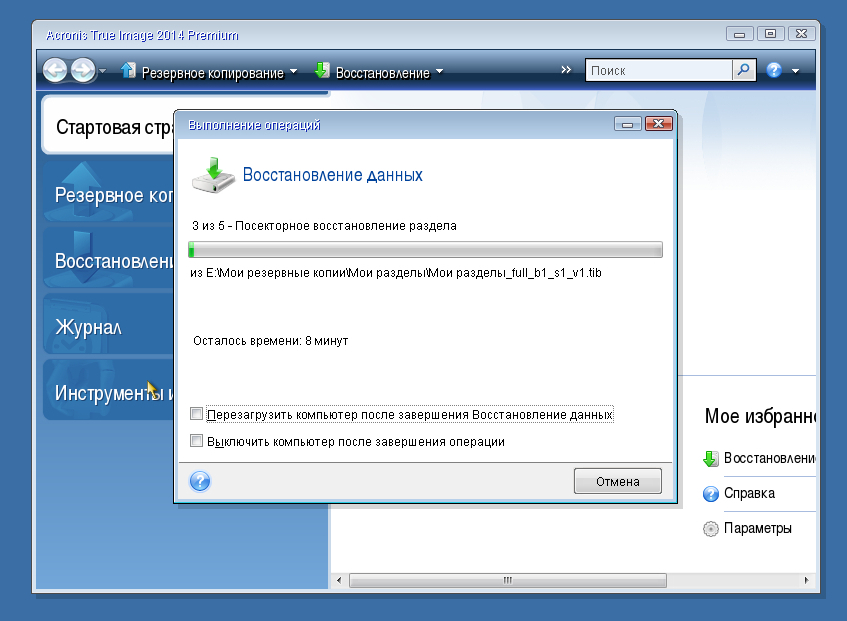 1. Восстановление системы с помощью Acronis из среды Windows.