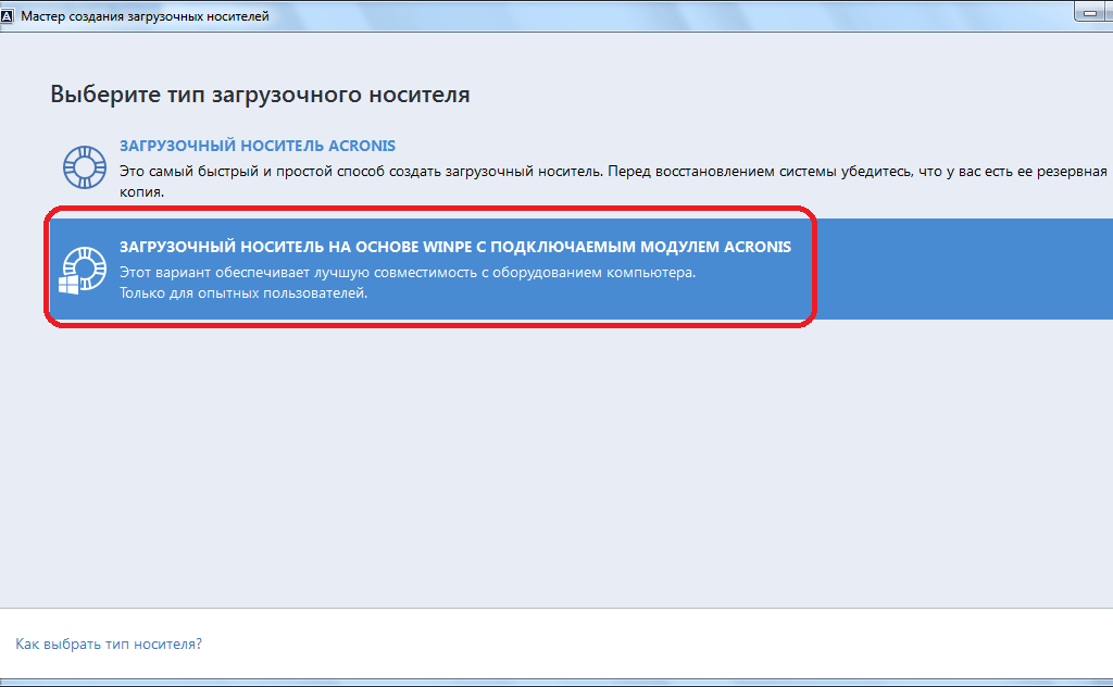 Загрузочный носитель Acronis (рекомендуется для большинства пользователей).