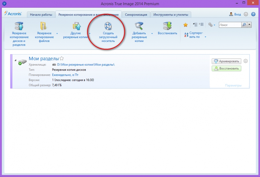 Резервное копирование и восстановление Windows 8.1 в Acronis True Image 2014
