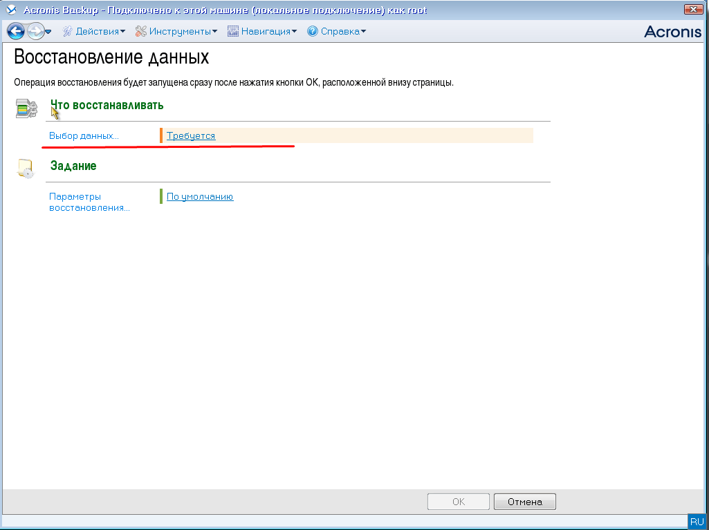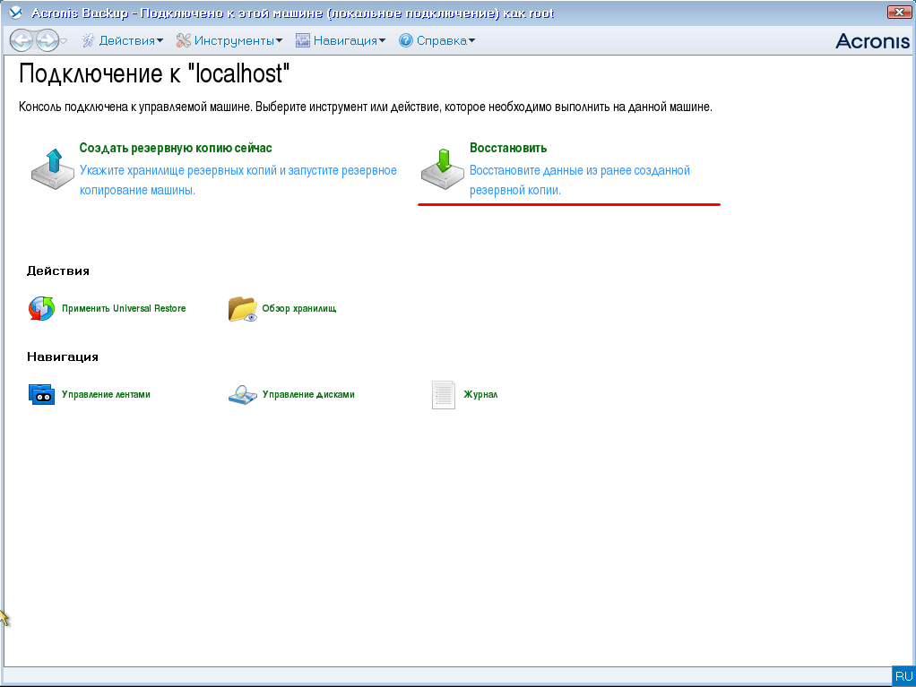 Как восстановить систему используя Acronis Backup