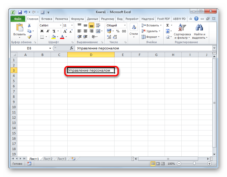 Для ввода символьного выражения нужно выделить ячейку текстового или общего формата, в которой оно будет храниться, и набрать текст с клавиатуры. Если длина текстового выражения выходит за визуальные границы ячейки, то оно накладывается поверх соседних, хотя физически продолжает храниться в исходной ячейке.