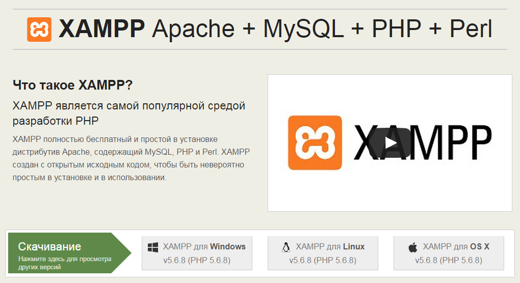 1. Отправляемся на сайт https://www.apachefriends.org/ru/index.html, выбираем дистрибутив для нужной операционной системы, и загружаем его: