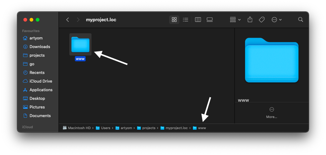 Теперь нужно внести изменения в ещё один файл — /etc/hosts В этом файле можно явно указать привязку доменного имени к IP-адресу. В нашем случае требуется привязать домен myproject.loc к локальному IP-адресу 127.0.0.1. После этого когда в операционной системе будет происходить обращение к myproject.loc она будет перенаправлять запросы на локальный адрес, где их будет ждать наш веб-сервер.