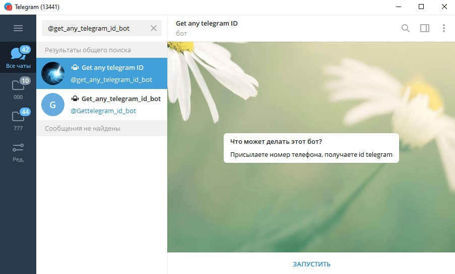 Кроме того, можно отправить номер в чат-бот мессенджера, получив в ответ на оставленный запрос не только ник, которому он принадлежит, но и так называемый chat_id.