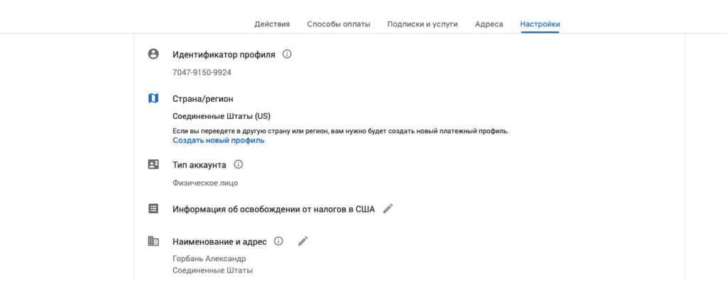 Google попросит вас создать новый платежный профиль для новой страны или региона. Нажмите Создать новый профиль и следуйте инструкциям на экране.