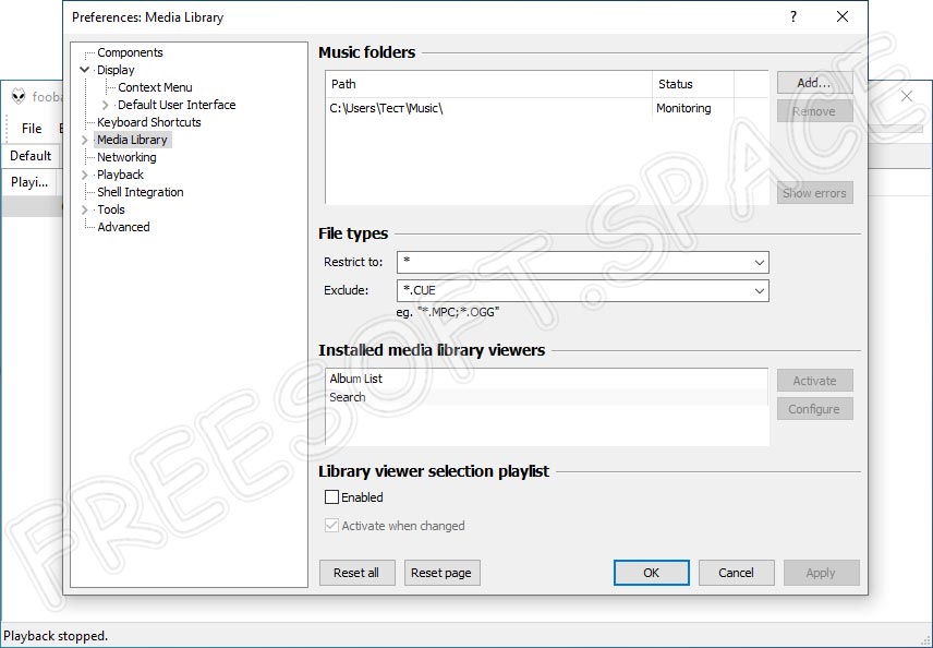 Любая музыка, которую вы добавляете в просматриваемые папки, будет автоматически добавлена в вашу библиотеку foorbar2000, чтобы ее можно было преобразовать в списки воспроизведения или воспроизвести по отдельности.