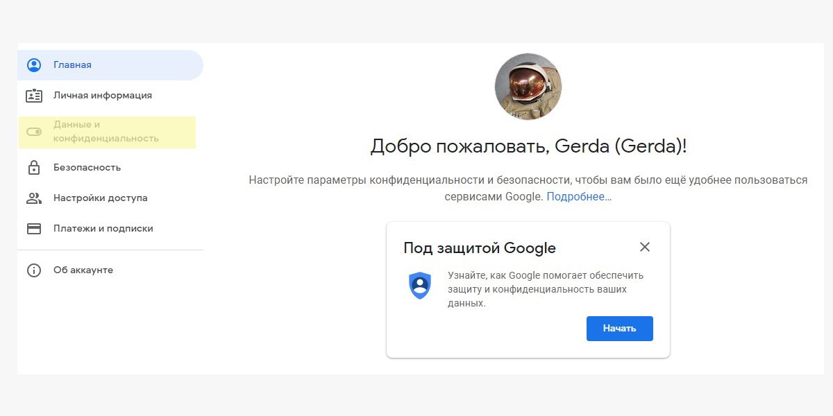 Далее в левом меню выберите пункт «Данные и конфиденциальность».