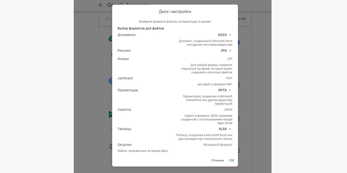 Экспортировать данные диска через архиватор Google значительно быстрее, чем просто скачивать их на компьютер. Более того, создание копии таким образом позволяет сохранить все версии файлов и комментарии к ним. По умолчанию архив данных будет разделен на части по 2 Гб, это упрощает их скачивание и распаковку.