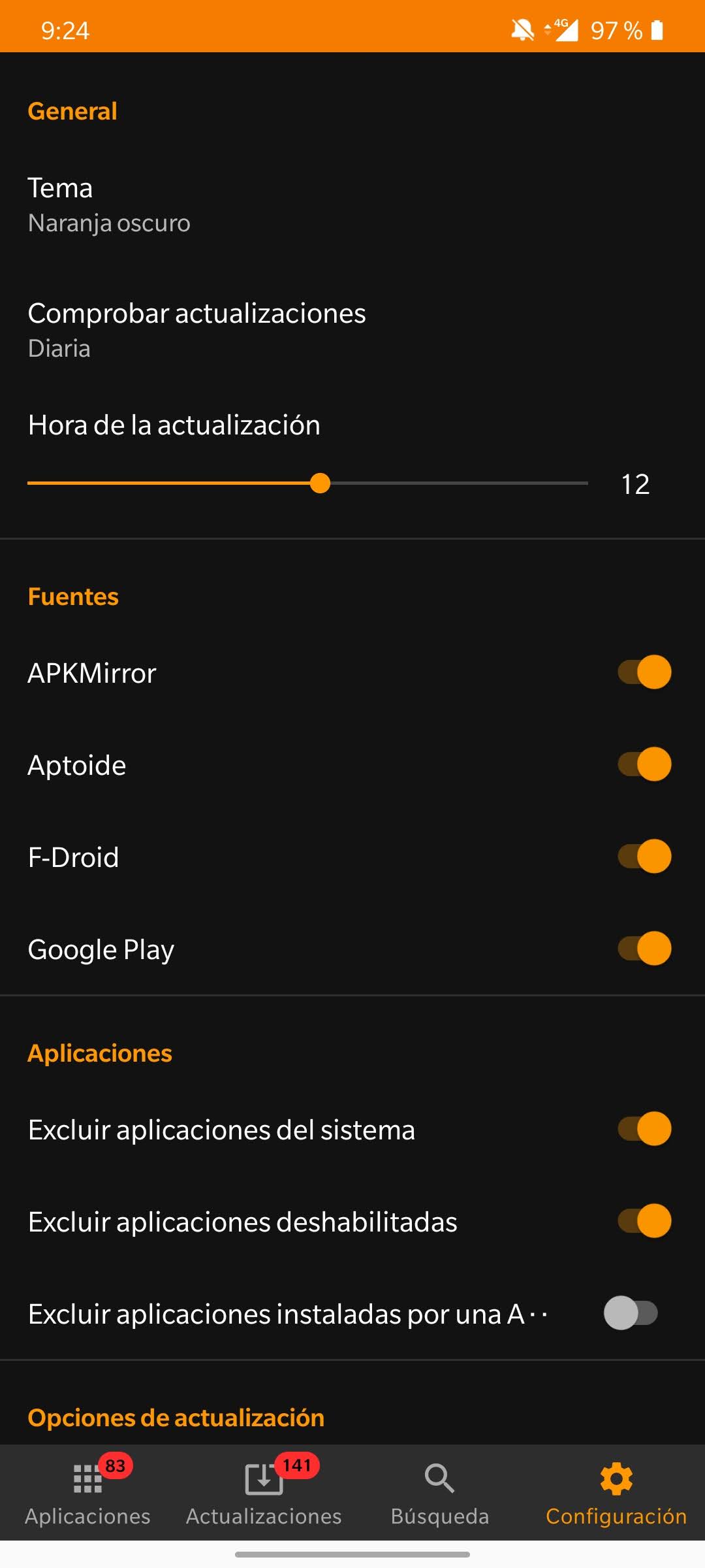 Принимая во внимание, что это программа с открытым исходным кодом, операция более чем правильная при обновлении приложений, даже для мобильного телефона, который использует сервисы Google. Чтобы получить файлы каждого из приложений, он полагается на 4 отличных источника для их получения, все они хорошо известны сообществу
