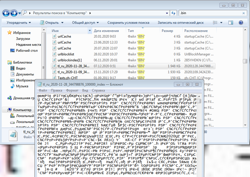 Также вы можете в проводнике Windows нажать по документу с расширением bin правой кнопкой мыши, указать команду «Открыть с помощью» и выбрать приложение «Блокнот». В обоих случаях перед вами откроется, на первый взгляд, непонятный набор символов, в котором нужно поискать отдельные понятные фразы, они помогут определить принадлежность файла.