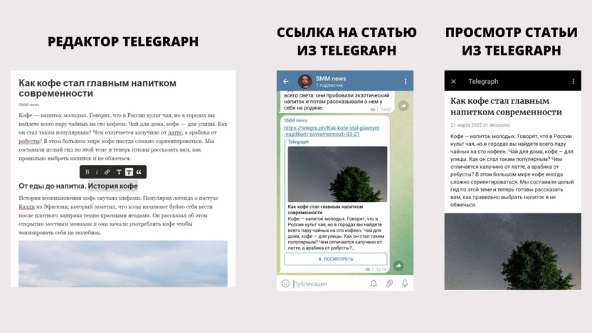 Кроме текста, в Телеграме есть постинг видео, гифок и файлов.