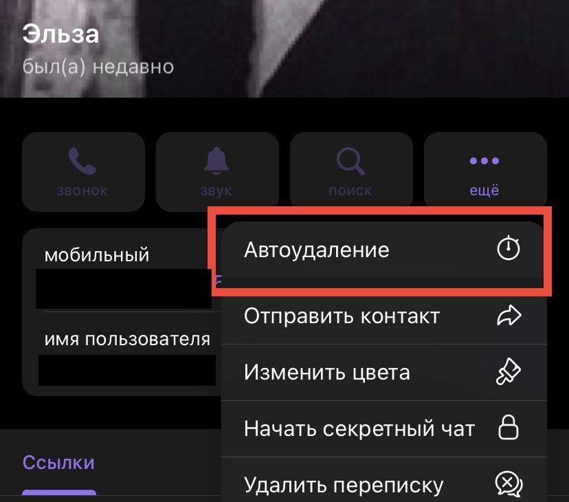 - в пункте «Автоудаление» настройте время, через которое информация самоуничтожится.